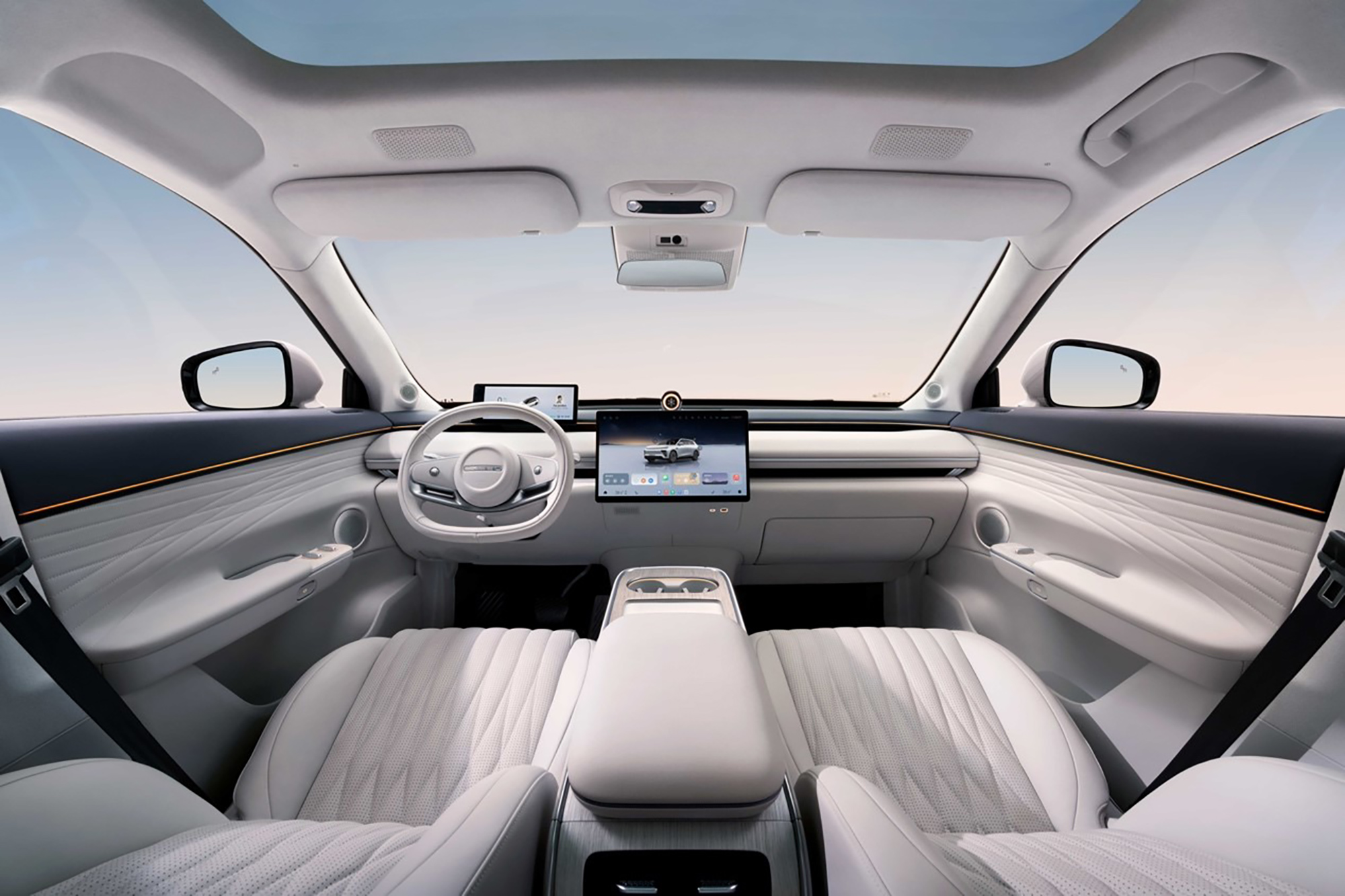 在舒适性方面,星纪元ET露营版的“移动大平层”座舱,为用户提供超越同级的空间体验与豪华享受,十四层工艺座椅结构,副驾零重力舒躺座椅,配备前后排通风、加热、按摩功能;23个高品质扬声器组成的Lion Melody大师音响系统,为野外之旅提供沉浸式听觉盛宴。再搭配8295P旗舰芯片、全域手车互联等智能化配置,让户外也能拥有“家”的体验。